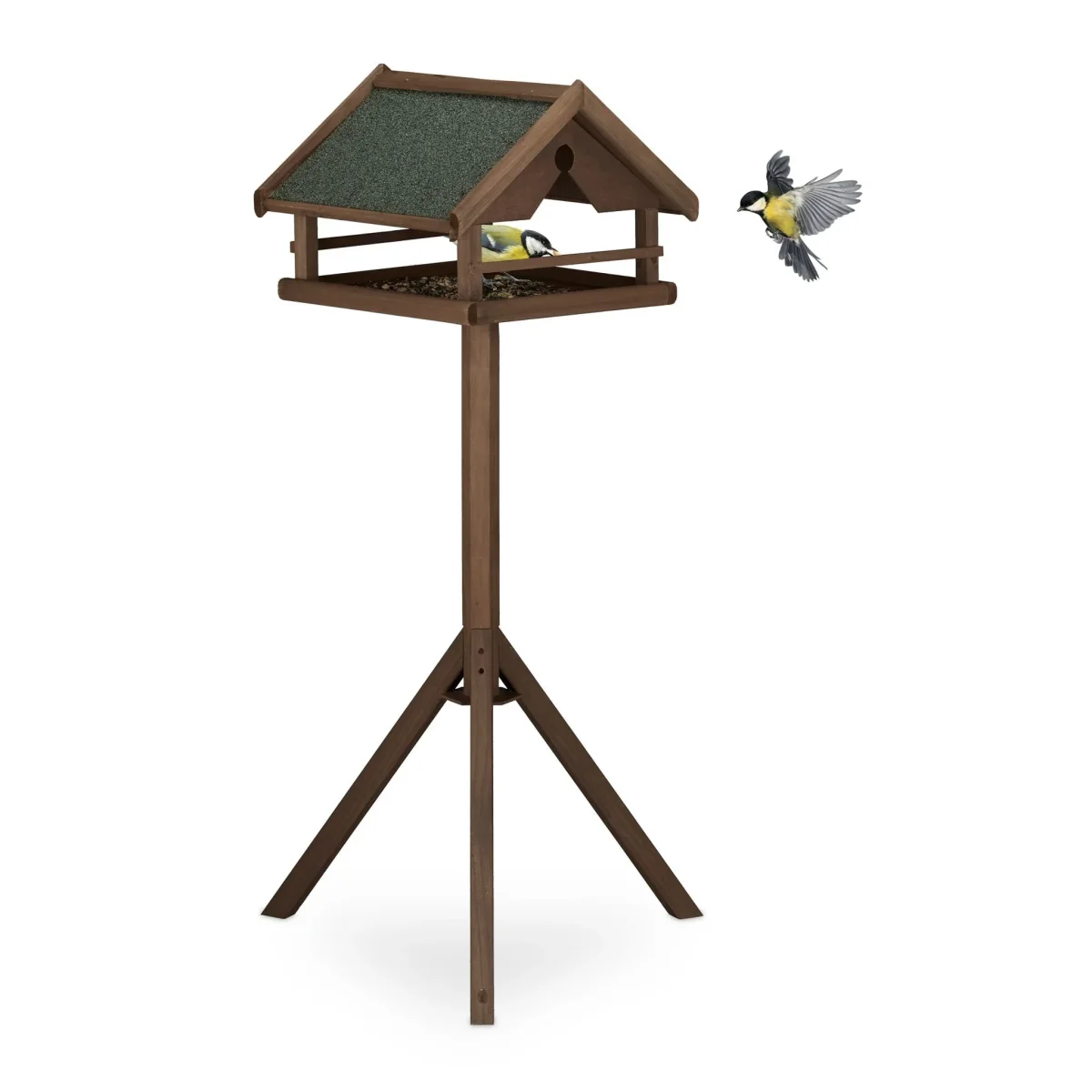 Bruin vogelvoederhuisje op standaard