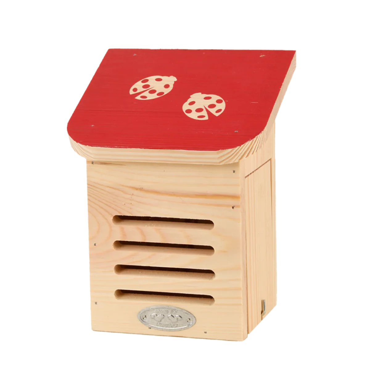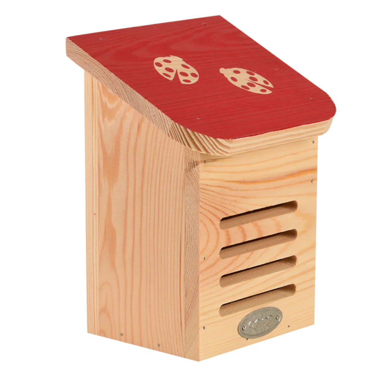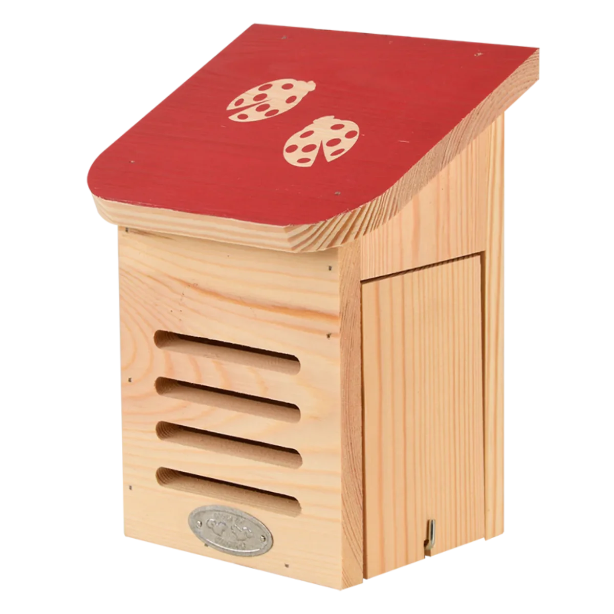 Lieveheersbeestjes zijn, naast een plezier om naar te kijken, zeer nuttig gasten in de tuin. Een volwassen lieveheersbeestje eet wel 100 bladluizen per dag, wat goede reden is om het hen naar de zin te maken in je tuin. Dit huisje biedt onderdak en beschutting. Het huisje is zo ontworpen dat lieveheersbeestjes hier gemakkelijk toegang tot hebben en worden concurrenten en roofdiertjes buiten gehouden.