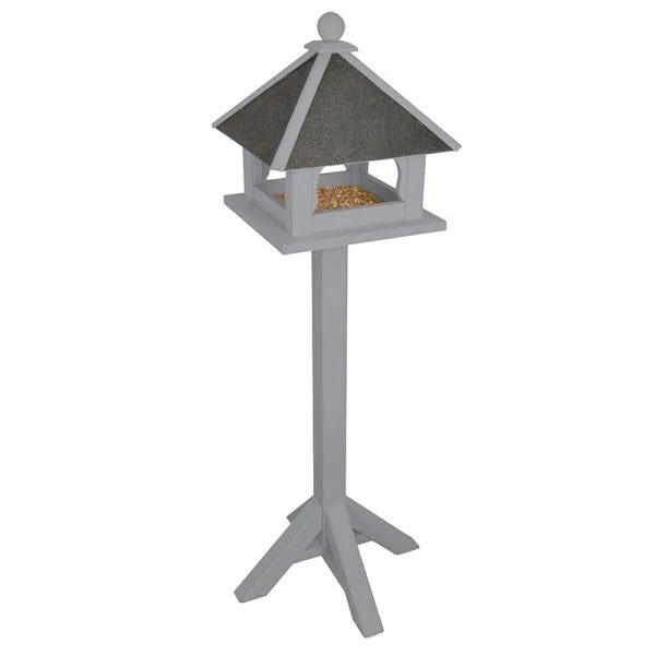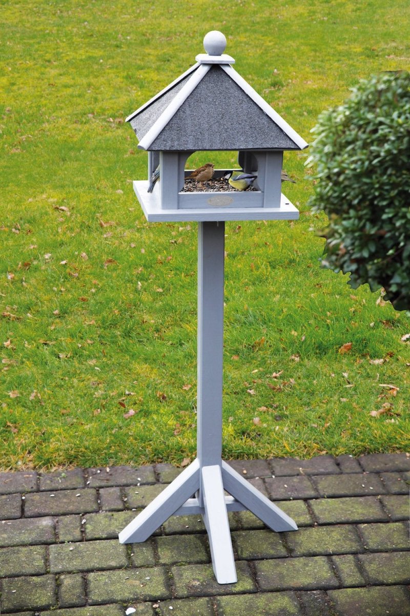 Robuuste simpele houten meubels en accessoires vormden jarenlang de entourage in de keuken en het leefgedeelte op boerderijen. Het kwalitatief hoogstaande hout zorgt voor een mooie afwerking en stabiliteit. Deze voedertafel met landelijke uitstraling biedt vogels een fijne voederplaats. Door de open structuur kunnen de vogels van alle kanten aanvliegen, en zo plaatsnemen op het voederplateau. Het bitumen dak zorgt ervoor dat het voer droog blijft. Met de vierpotige voet heeft de voedertafel op elke ondergrond een goede stabiliteit.