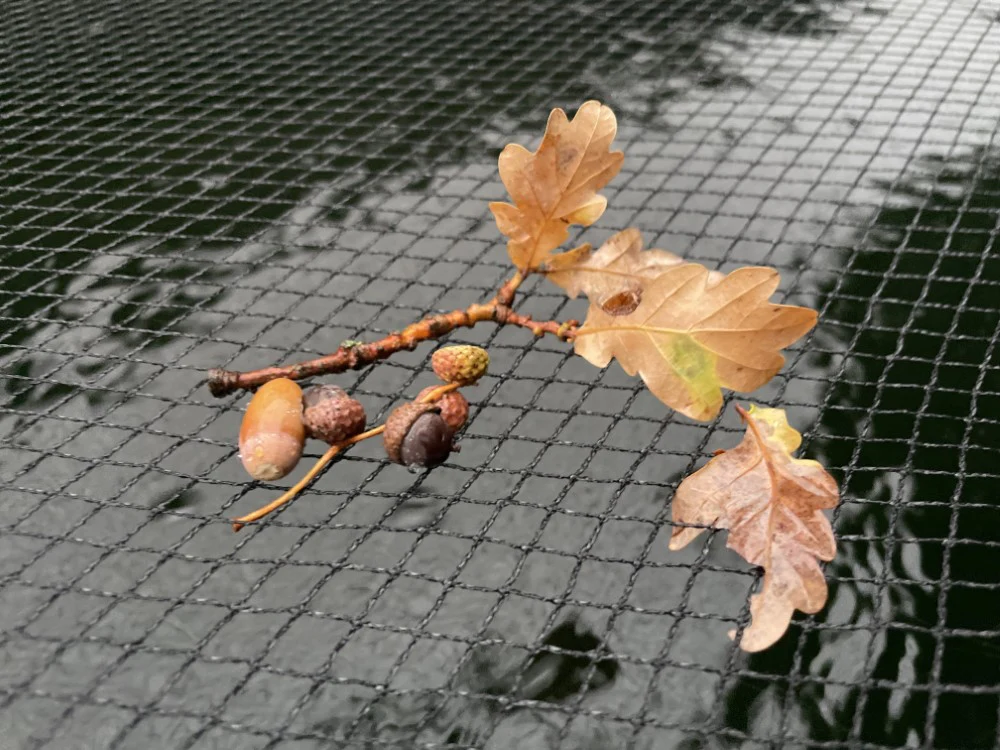 Een vijverafdeknet is te gebruiken tegen het springen van de vissen, het leegroven van je vijver door een reiger of het opvangen van het blad en takjes in het najaar.