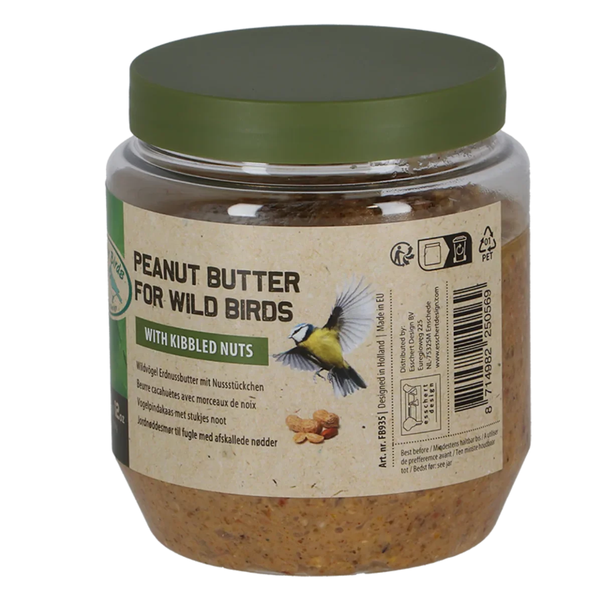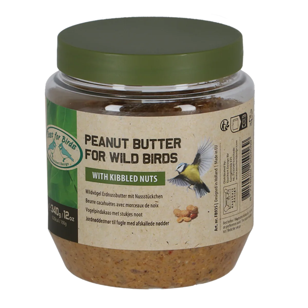 Vogelpindakaas is voor onze gevleugelde vrienden een ware lekkernij! Het bevat goede voedingsstoffen voor vogels, zit boordevol calorieën, is voedzaam en gezond. Gewone pindakaas (voor eigen consumptie) bevat echter ook veel zout en dat is erg ongezond voor de vogels. Deze pindakaas is speciaal ontwikkeld en bevat essentiële ingrediënten die tuinvogels nodig hebben zonder toegevoegd zout. Plaats de pindakaas in het speciale pindakaashuisje en geniet van de tuinvogels die deze aantrekt.