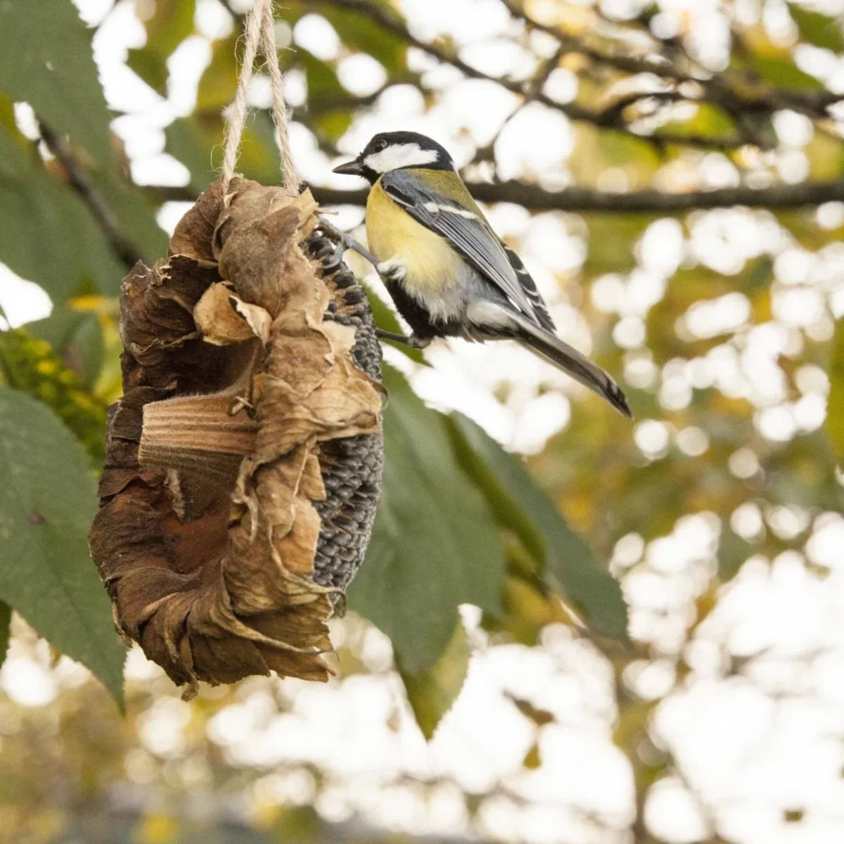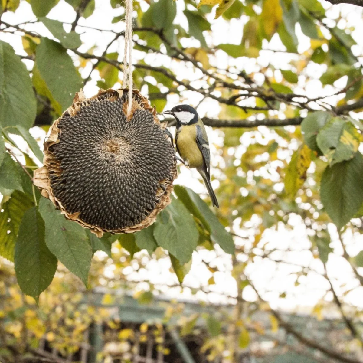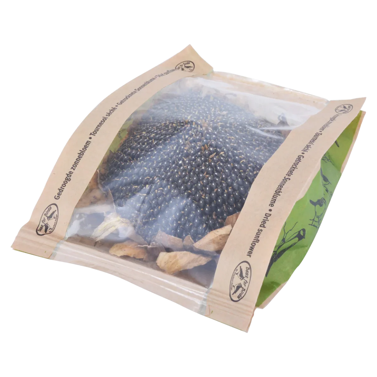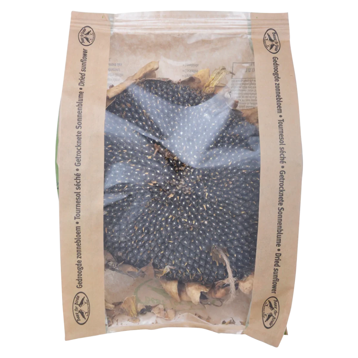 Zonnebloem gedroogd. Een gezonde kant-en-klaar maaltijd voor vogels inclusief handig ophangkoord.